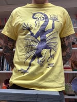 printed on hanes 100% cotton yellow t shirt. fit is true to size even after wash.